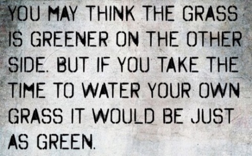 You may think the grass is greener on the other side. But if you take the time to water your own grass it would be just as green.